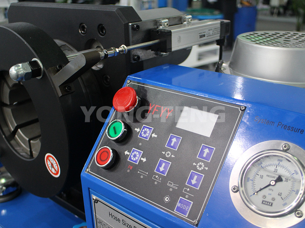 5. 按下扣壓按鈕執行扣壓操作,直至壓管機頭停止扣壓自動張開模具為止。