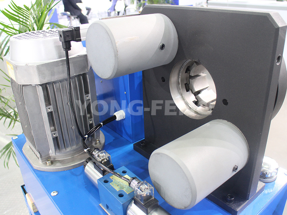 1、采用雙液壓回路運作原理,即活塞的進退及模具的張口和收縮運動都是依靠液壓動力源產生的動力。它不僅移動平穩、回程快速,也不 會發生像彈簧回位,使模具張不開而鎖死的現象。而且油缸鎖緊系統設計都是前后貫通,易于扣壓各種異型彎頭。