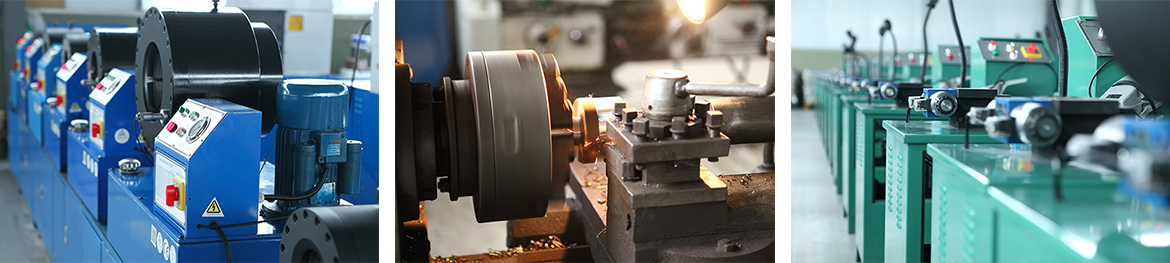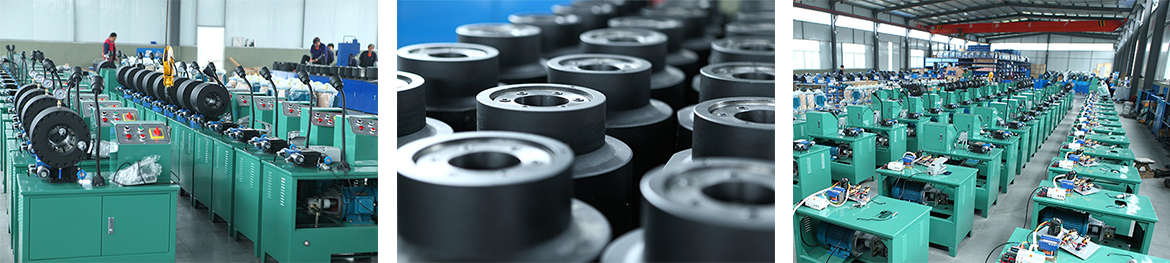 從液壓油管扣壓參數表中查得Ф19mm四層鋼絲膠管接頭外套外徑扣壓前為37mm,扣壓后為33.5mm,應選用的模具內徑為Ф33mm,對應千分尺刻度為3。安裝好Ф33mm模具于模座上,并將千分尺刻度旋至3處,將膠管剝皮后與接頭組裝好。扣壓完畢后測量接頭外套外徑就是扣壓參數表的扣壓后數值33.5mm,則完成扣壓。如扣壓后外徑不符,微調千分尺后扣壓下一根膠管??蹓耗z管接頭時:扣壓尺寸過多,膠管內膠層被壓斷,造成漏油;扣壓尺寸太少,造成漏油和被油壓沖脫接頭。務必掌握合理扣壓度,以接頭芯子內孔收縮度為準,國標接頭受壓縮小0.1~0.4mm,普通接頭受壓縮小0.1~2mm。因膠管及接頭外套的生產廠家不同,如北方大多數膠管生產廠用GB標準,南方用602標準,國外SAE標準,各廠膠管、接頭的具體尺寸、材質可能不盡相同,因此扣壓參數表數據僅供參考,具體扣壓尺寸應以壓力實驗為依據。